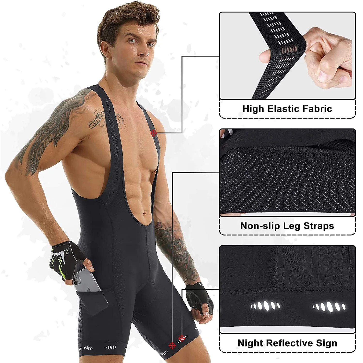 Quick-dry polyester and elastane fabric that includes UPF 50 rating for full protection against ultraviolet radiation. Pocket in the lower leg part of the suspenders and reflective detailing (330 CD/LUX luminosity) for a higher security on the road. Redefine the future.