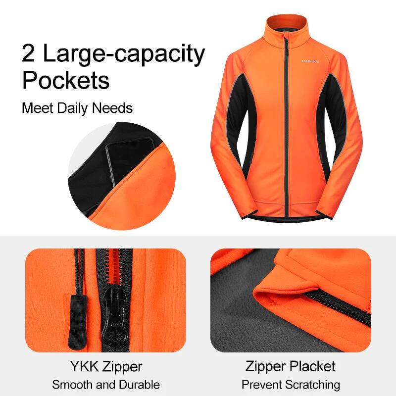• This women cycling jacket is made with 100% polyester of composite fabric, water-repellent, windproof and breathable. Soft fleece inside provides long lasting warmth and comfort. Water resistant fabric can handle light rain for a short time.